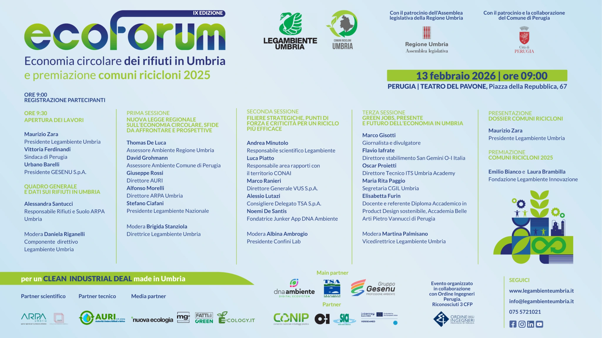 L’EcoForum, organizzato da Legambiente Umbria, è l’appuntamento annuale di riferimento per analizzare le performance regionali nella gestione dei rifiuti urbani, approfondire le best practices e parlare dell’evoluzione normativa del settore. Un momento di dialogo tra amministrazioni comunali, Gestori e stakeholder per condividere dati, criticità e opportunità.